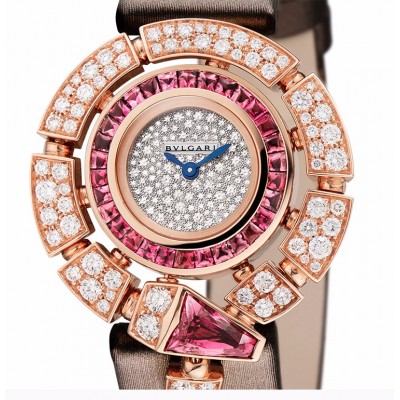BVLGARI/宝格丽 Serpenti系列 女士玫瑰金表壳蛇形雪密钻石表盘石英表手表女表 102537