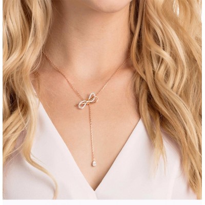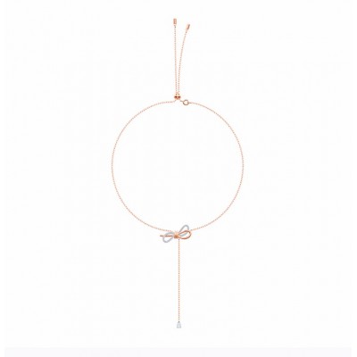 Swarovski 施华洛世奇 20新品 LIFELONG BOW系列 女士玫瑰金色仿水晶蝴蝶结Y型浪漫项链 5447082