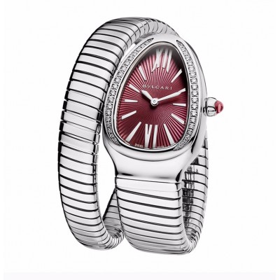 BVLGARI/宝格丽 Serpenti系列 女士明亮式切割钻石镶饰钢制表壳紫罗兰漆面表盘石英表手表女表 102530