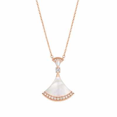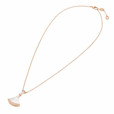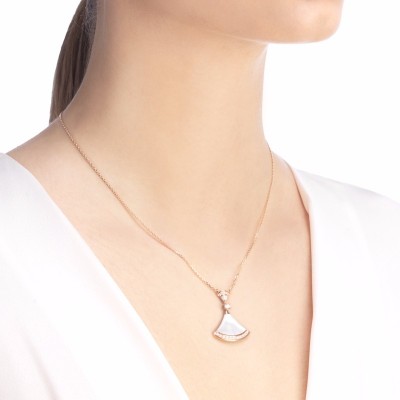 宝格丽DIVAS'DREAM系列 18K金玫瑰金镶白贝母与钻石 小扇子项链 356452