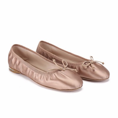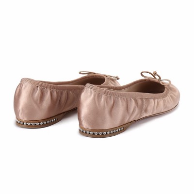MiuMiu/缪缪 裸色 女士仿水晶装饰跟缎面芭蕾平底鞋 5F915C_049_F0A48_F_005 2020年春夏