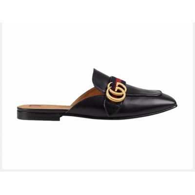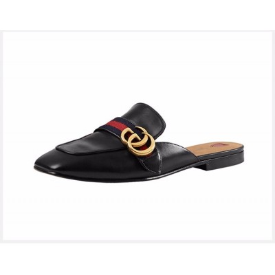 GUCCI/古驰 女士黑色牛皮双G标方头鞋低跟鞋休闲鞋穆勒鞋平跟鞋半包拖鞋凉鞋女鞋