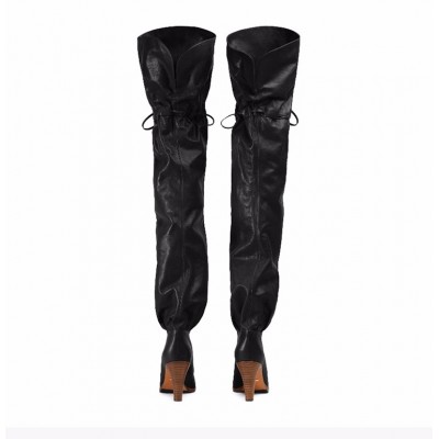 首页 > 鞋履 > 靴子 > GUCCI/古驰 女士黑色皮革时尚高跟鞋过膝长筒靴女鞋 522689-0QH00-1000