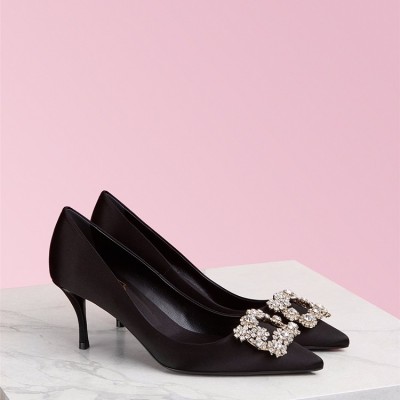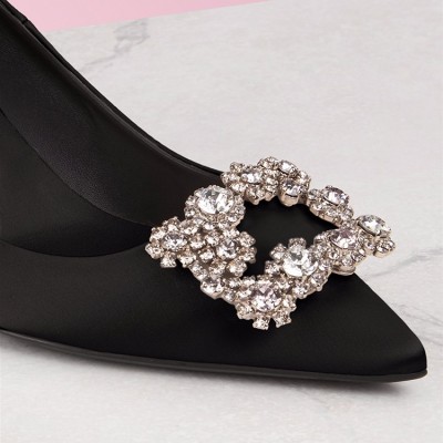 本款Flower Strass单鞋精选真丝缎制成,搭配水钻镶嵌饰扣,是搭配晚装的单品。