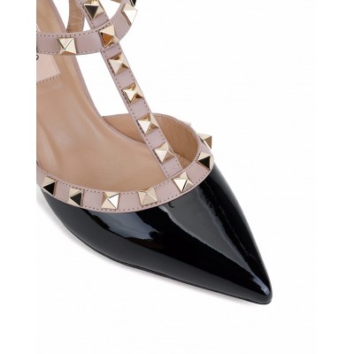Valentino Garavani Rockstud 漆皮系带高跟鞋.