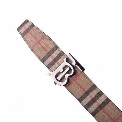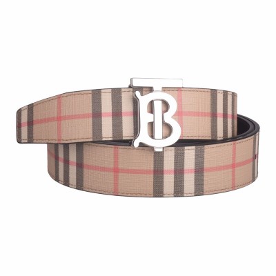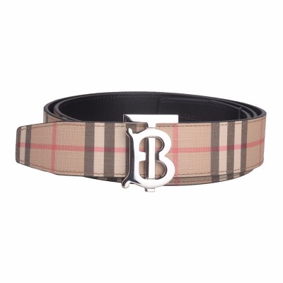 BURBERRY 男士经典卡其色双面会标图案复古格纹TB标识皮带腰带 8021957
