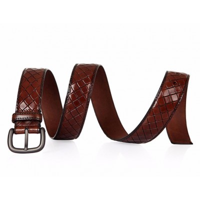 Bottega Veneta/葆蝶家 BV 男士棕色小牛皮经典编织工艺皮带针扣式皮带腰带 261362-VQ240-2040