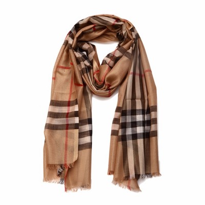 BURBERRY/博柏利 驼色经典格纹 丝毛混纺围巾 80184681