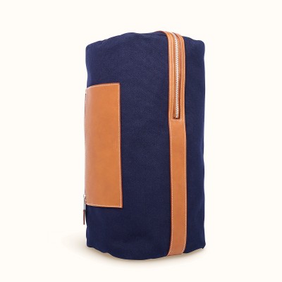 Bag in Goéland canvas and Idro calfskin with adjustable shoulder strap, 1 exterior back zipped pocket, 2 saddle studs and 1 "Hermès Paris" hot-stamped label