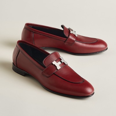 Loafer in goatskin with palladium-plated signature "H" detail and contrasting Nappa leather piping.