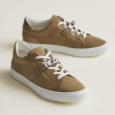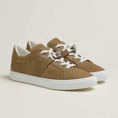 Sneaker in suede goatskin and calfskin with functional palladium-plated Kelly buckle.