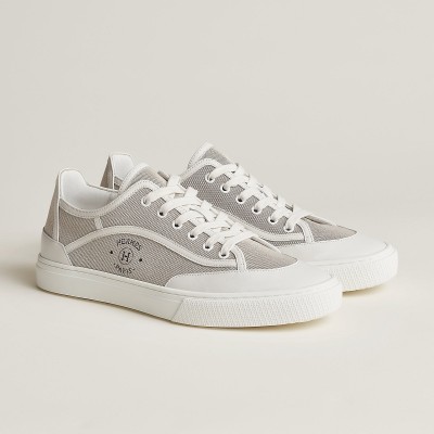 Sneaker in H canvas and calfskin with signature "Hermès Paris" stencil.