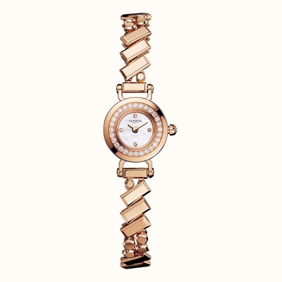 Diamond-set rose gold watch, quartz movement, diamond-set white mother-of-pearl dial, rose gold bracelet