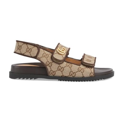 This piece from the Gucci Lido collection is inspired by summer on the Italian coast and beach clubs. Modern and sporty, this flat sandal has a hook-and-loop closure for a comfortable feel. Crafted from beige and ebony GG canvas, this accessory features a strap embellished with a subtle Double G hardware.