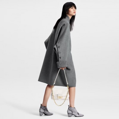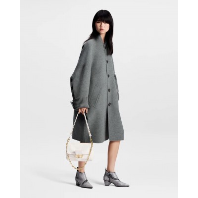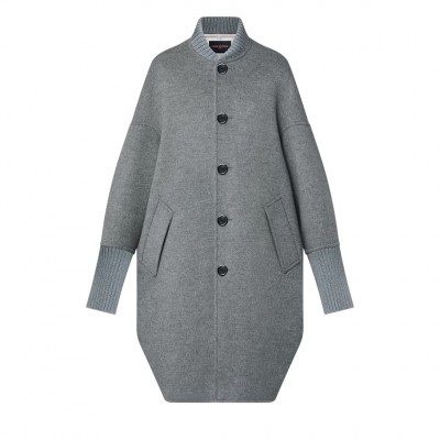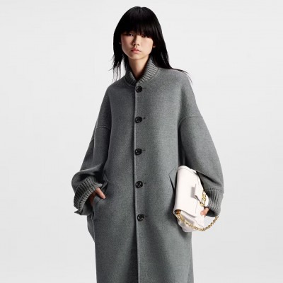 This coat is made of double-faced silk and wool blend and has a long, rounded silhouette with a comfortable and loose fit. The ribbed collar and exaggerated ribbed cuffs pay tribute to the sporty style of the bomber jacket, the exquisite buttons on the sleeves show functional details, and the side pockets and Monogram elements highlight the brand identity.