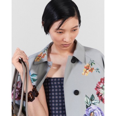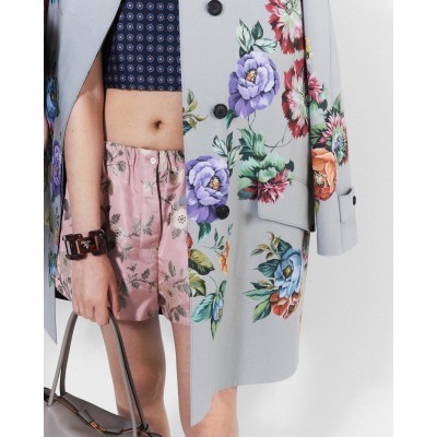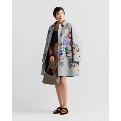 Flowers are a universal symbol of beauty, constantly reinterpreted across Prada collections as a chic and sophisticated staple. An elegant floral motif adorns this menswear-inspired coat, which features a sophisticated single-breasted silhouette with a shirt-style collar, concealed buttons and back slits.