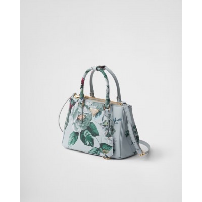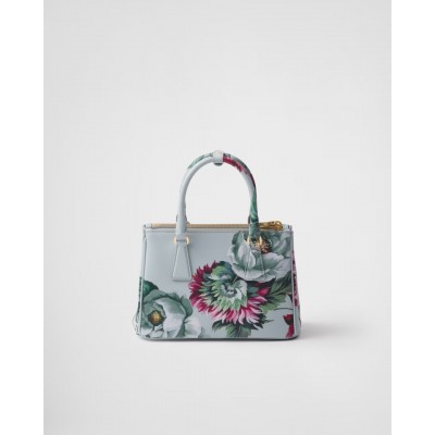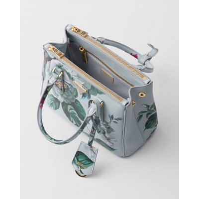 The design of the Prada Galleria handbag is refined and timeless, based on industrial precision and exquisite craftsmanship, paying tribute to the historic boutique of Milan's Galleria Vittorio Emanuele II in 1913. This style is composed of more than 80 individual parts assembled by hand, showing a versatile style that meets the public's aesthetics, making it an ideal choice for a new interpretation of fashionable wear. Featuring the iconic three pockets, this accessory showcases the unique cross-grain and waxy sheen of Saffiano leather, paired with a colorful floral print for an elegant look.