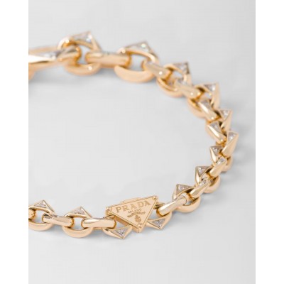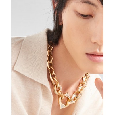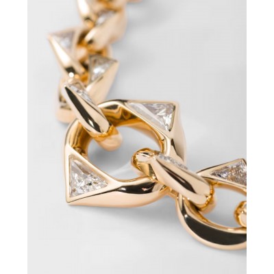 Eternal Gold jewelry injects new vitality into fine jewelry with unique designs, cleverly combining technological innovation, craft inheritance and artistic creation. A symbol of excellence and progress, new Prada Cut laboratory-grown diamonds add radiance to this elegant and contemporary recycled gold necklace. This chain-style design is embellished with diamonds. Its unique cutting proportions and multi-faceted sparkling facet design are inspired by the iconic triangle, which is full of geometric beauty.