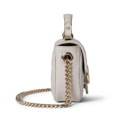 The GG Marmont series uses classic colors to interpret new silhouettes, showing the charm of early autumn. This handbag is crafted from light gray quilted V-shaped leather and features a removable light gold-toned chain shoulder strap with toggle buckle. The magnetic flap closure is embellished with Double G, doubling the charm of the entire design.